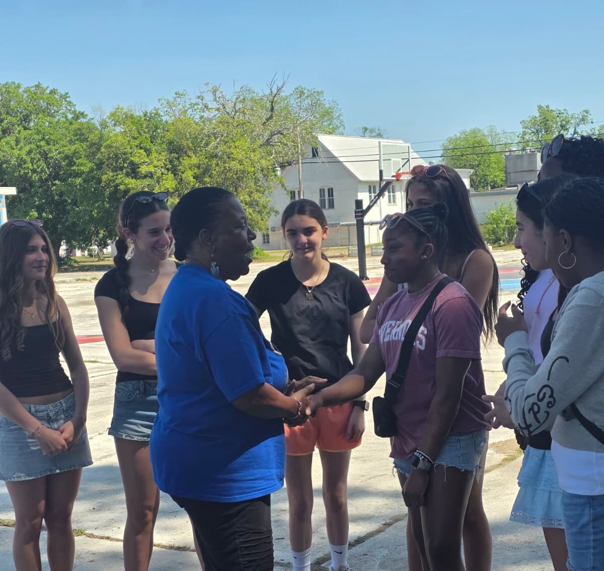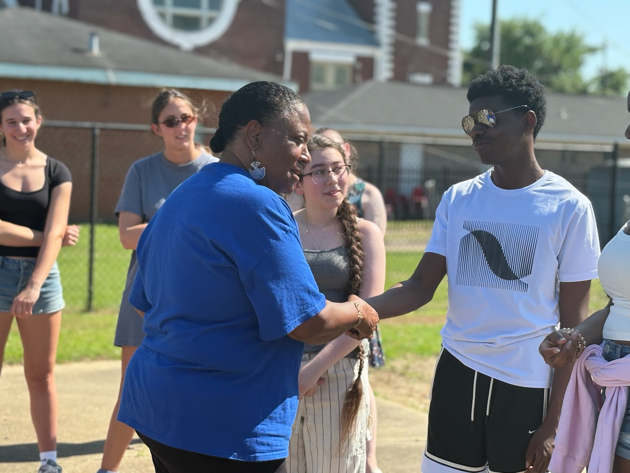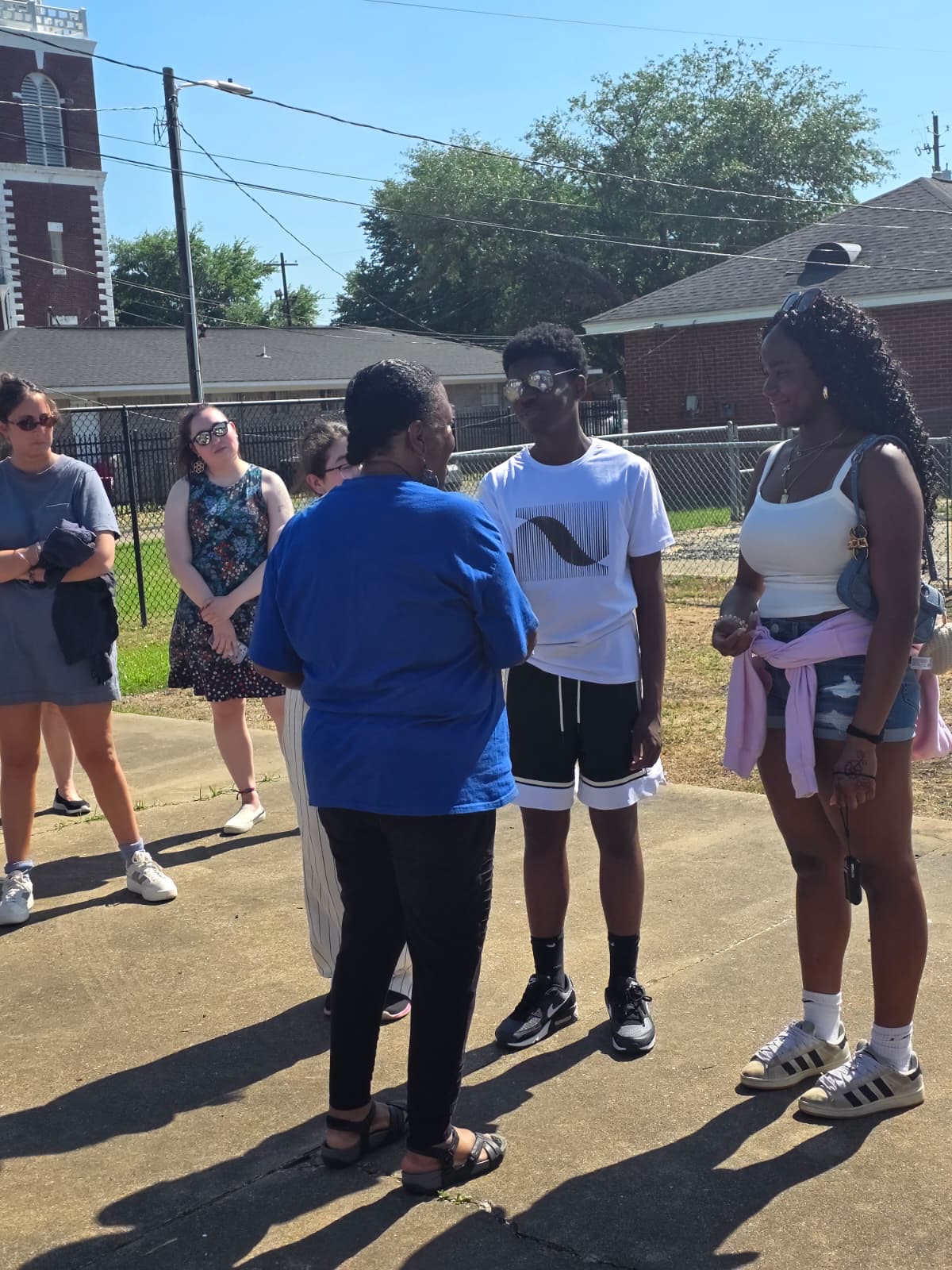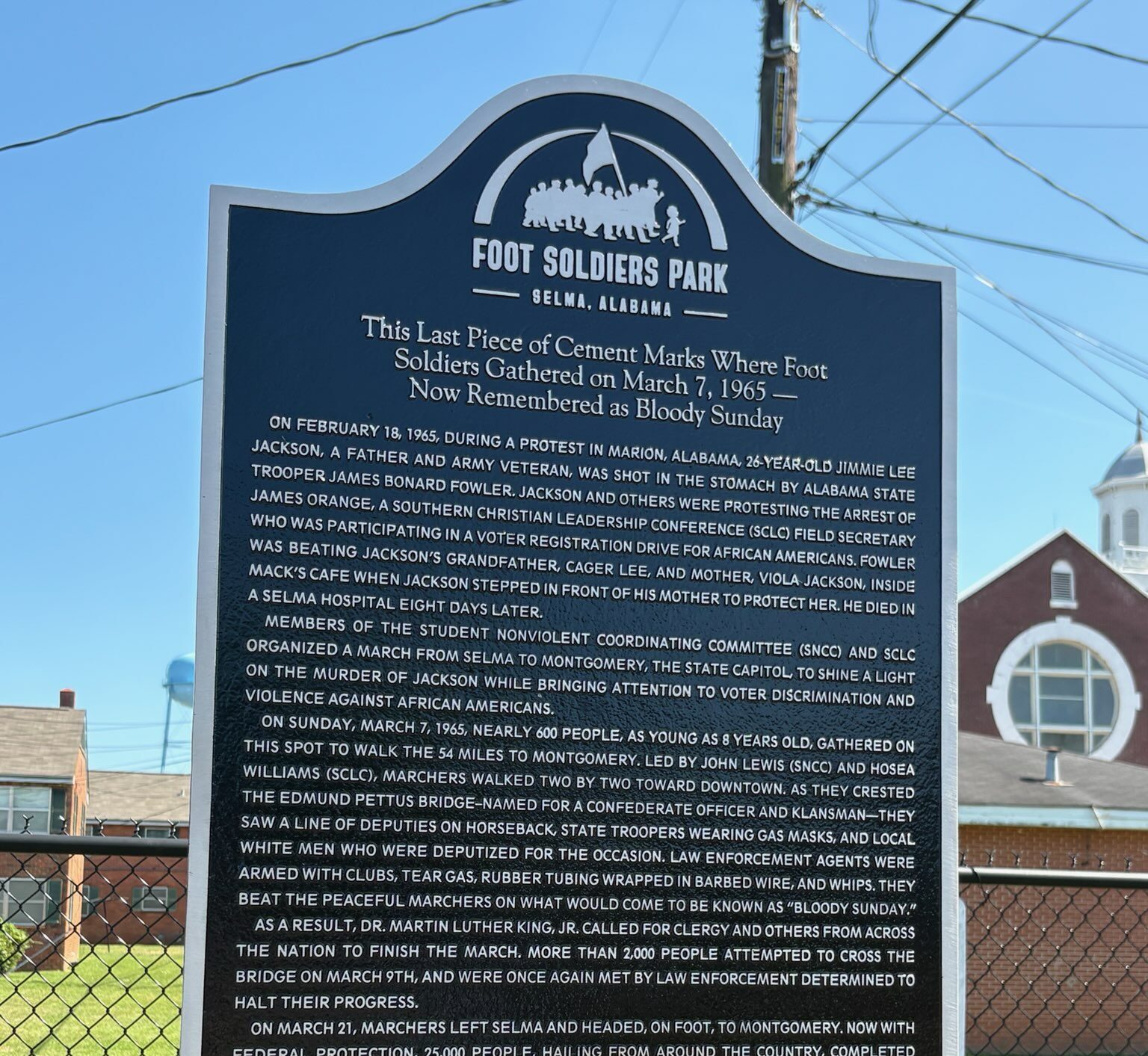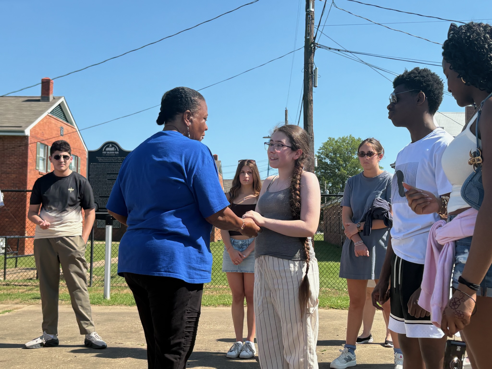 Students stood with Barbara on the patch where the marchers met on Bloody Sunday, facing the Brown Chapel AME church.
