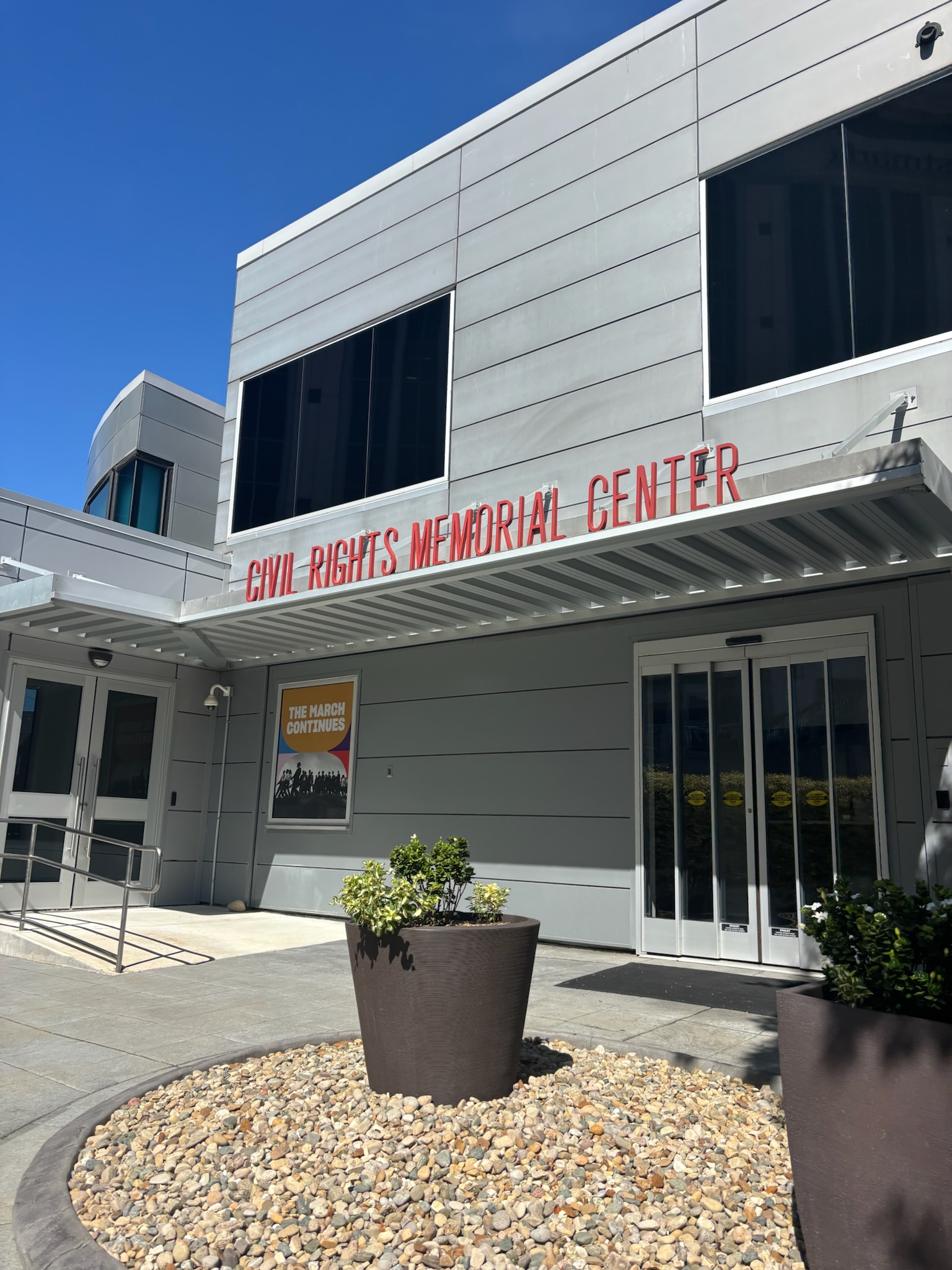 After breakfast, we arrived at our first stop of the day: the Southern Poverty Law Center’s Civil Rights Museum and Memorial in Montgomery. The SPLC was founded in the wake of the Civil Rights Act of 1965 and has since expanded to include researchers, educators, and community organizers who are tracking hate groups and fighting legislation that restricts civil rights.