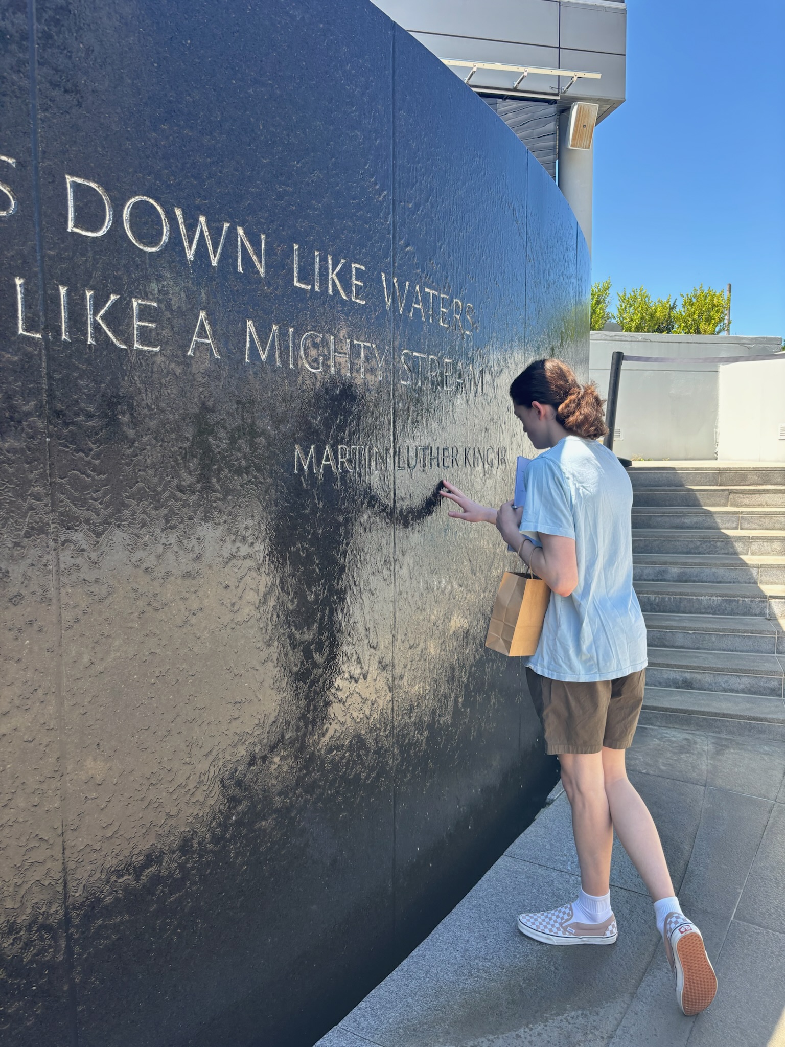 CRS students chose to sign the Wall of Justice and pledge to take a stand against hate, injustice, and intolerance. Their names cascaded digitally across the wall with many others, similar to the flow of water on the memorial.