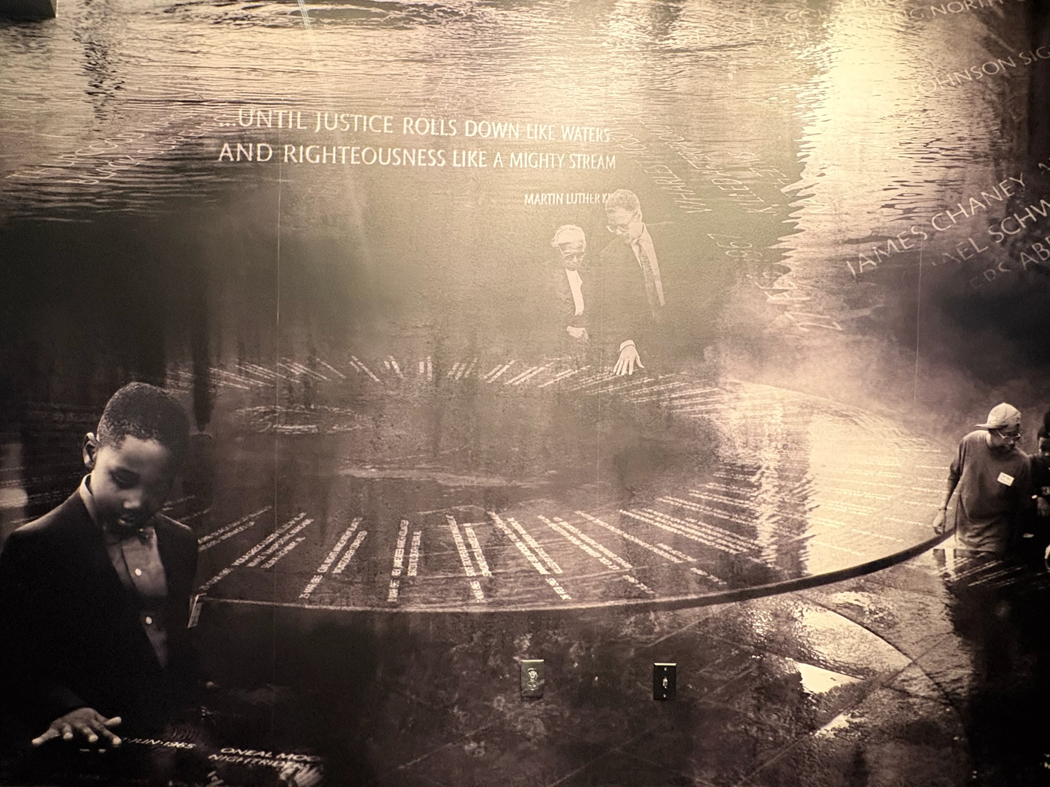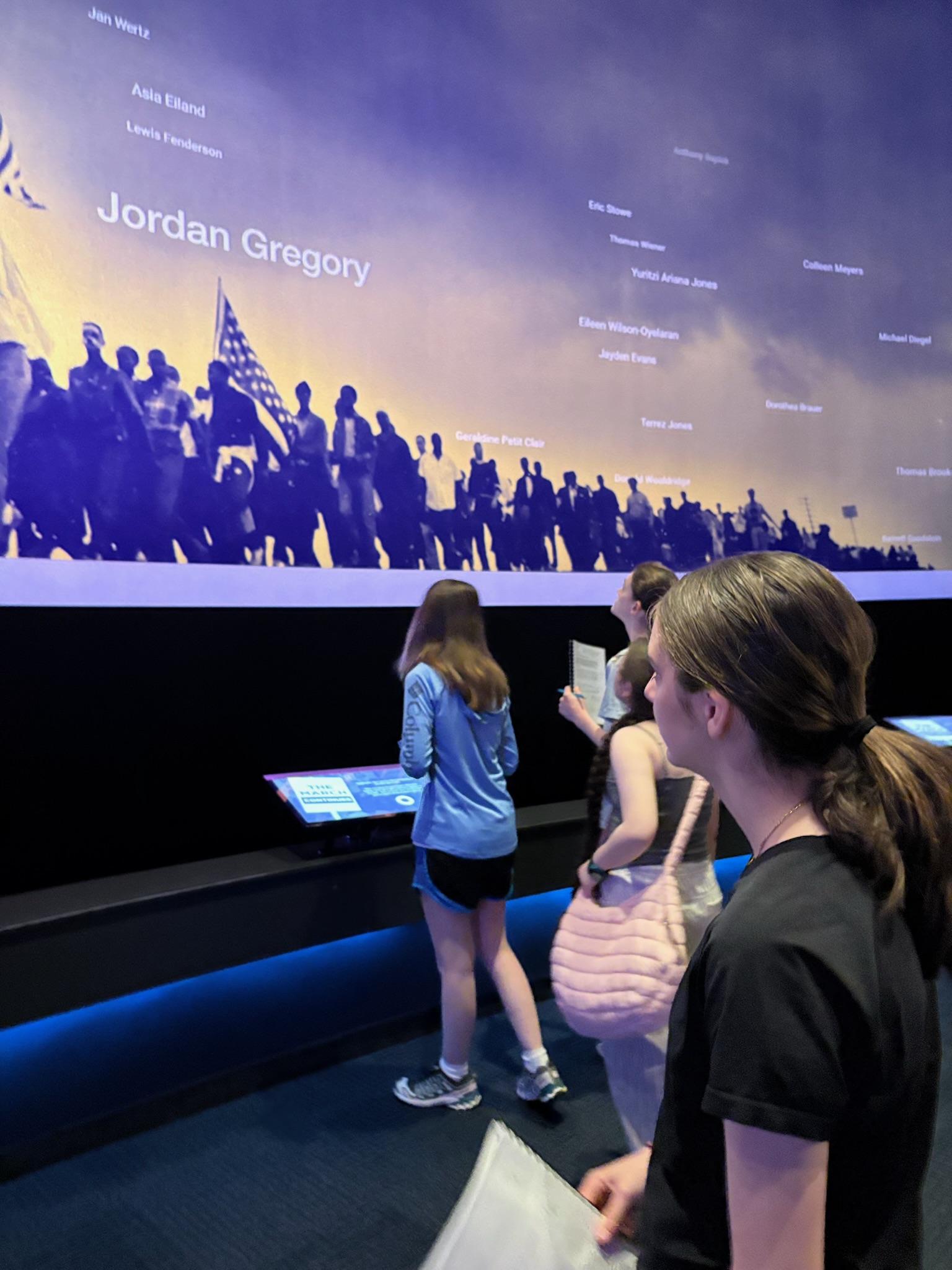 We watched two short films. One focused on a timeline of figures from the Civil Rights movement that coincided with the Memorial including Jimmie Lee Jackson, Reverend James Reeb, Viola Liuzzo, Medgar Evers, Emmett Till, and George Lee. The film also shared testimonies from people who lived through the movement.