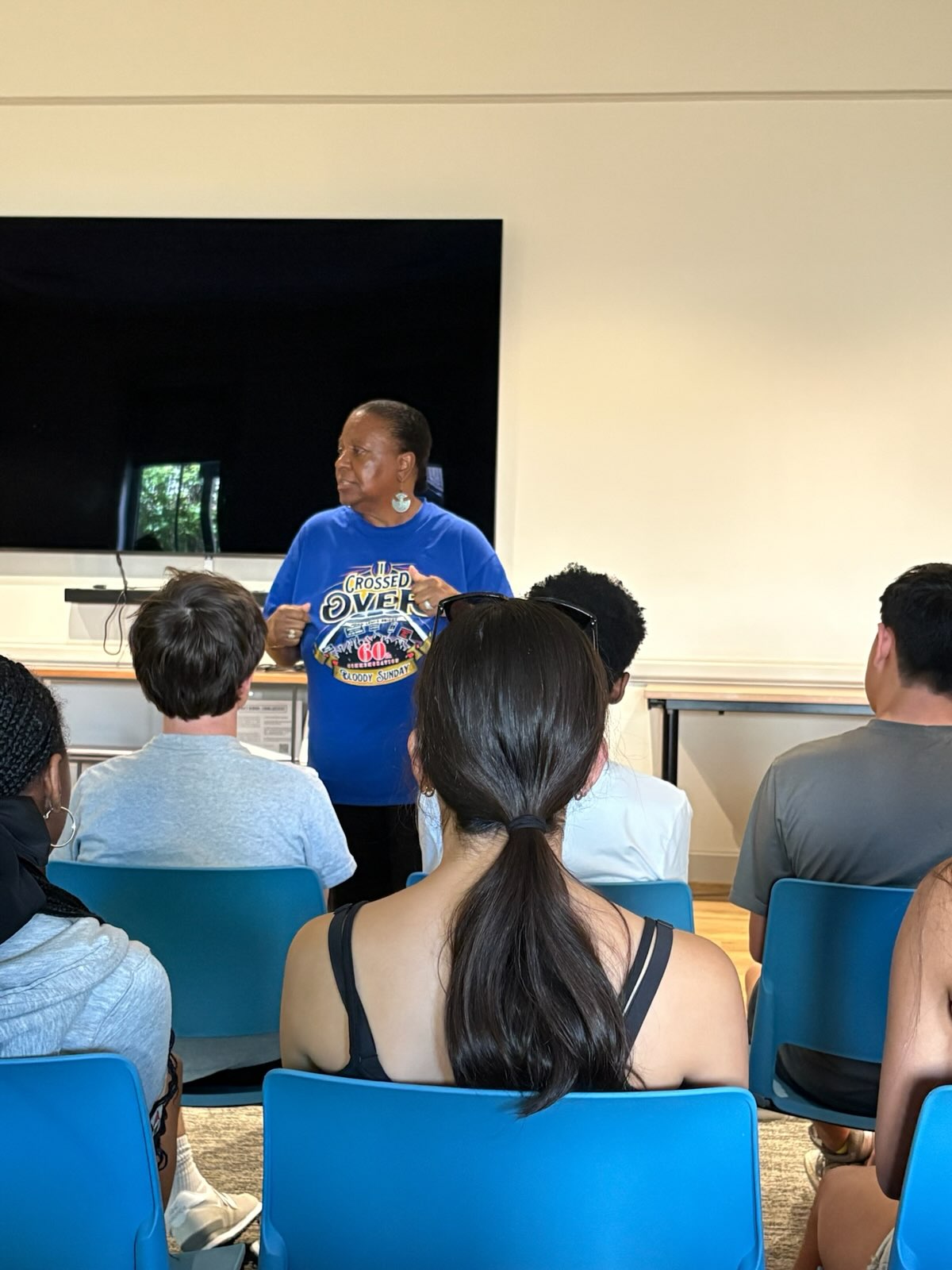 When JoAnne was just an 11-year-old student, she joined her older sister Lynda on the day that became known as Bloody Sunday. Barbara showed us a mural of JoAnne, who passed away in February of this year. Last year, the Class of 2025 got to meet with JoAnne.