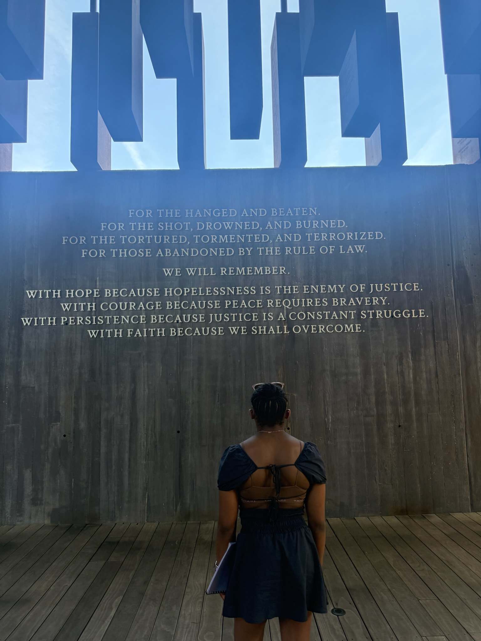 Next, we visited The National Memorial for Peace and Justice, dedicated to the Black victims of lynching in America in the post-Reconstruction era and the racial terrorism these lynchings intended to cause.